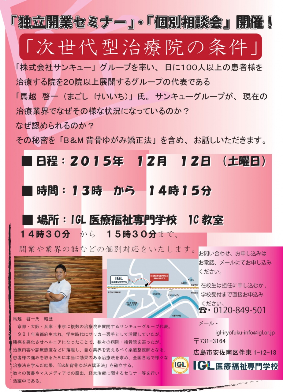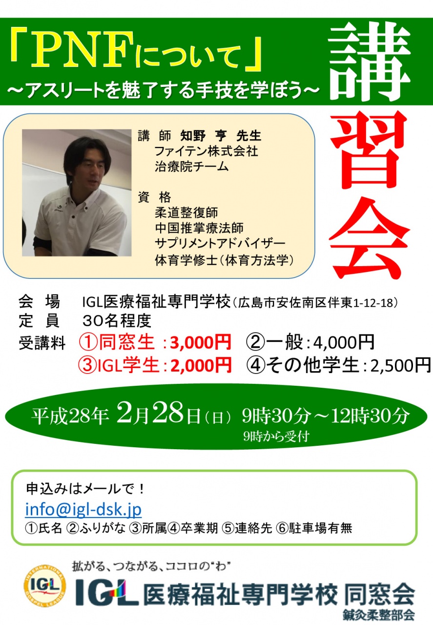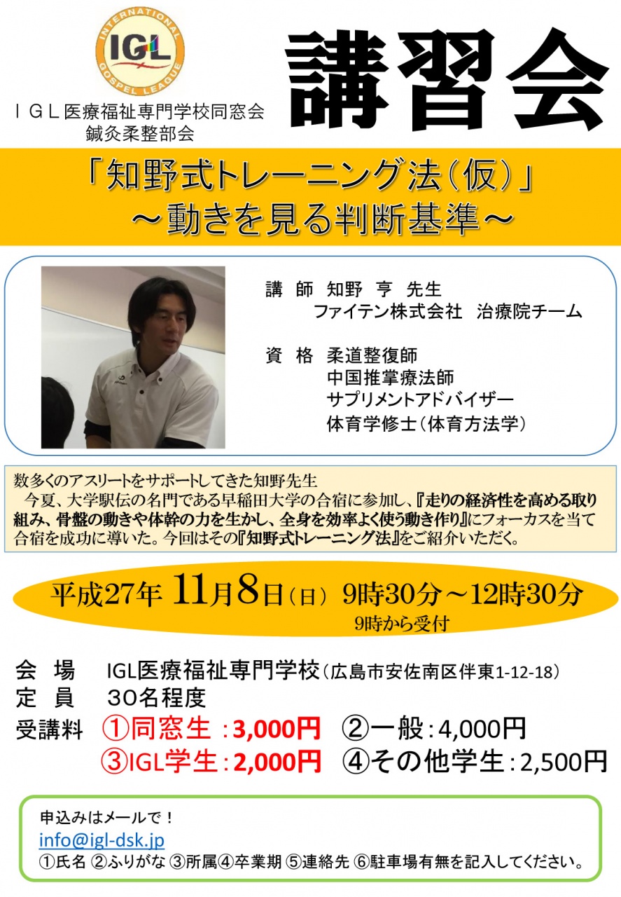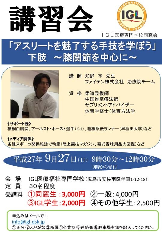 主催 IGL医療福祉専門学校同窓会 鍼灸柔整部会