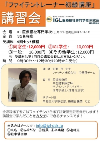 今年度、はじめての試みでを『ファイテントレーナー』初級認定講習会開催します。